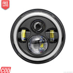 K D 7" LED Headlight - Blazing 110W | High/Low Beam, DRL | H4 Plug & Play Compatible With Bullet (Ryal Enfld), Thar, Gypsy